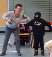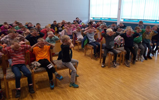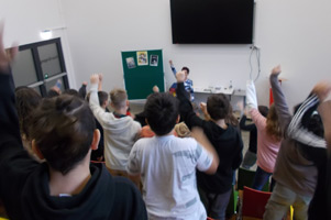 die Klassen 3 und 4 mit Monsterboy. Zum Glück haben die
