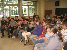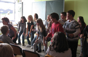 aus drei 3. Klassen und nette Lehrerinnen erwarteten